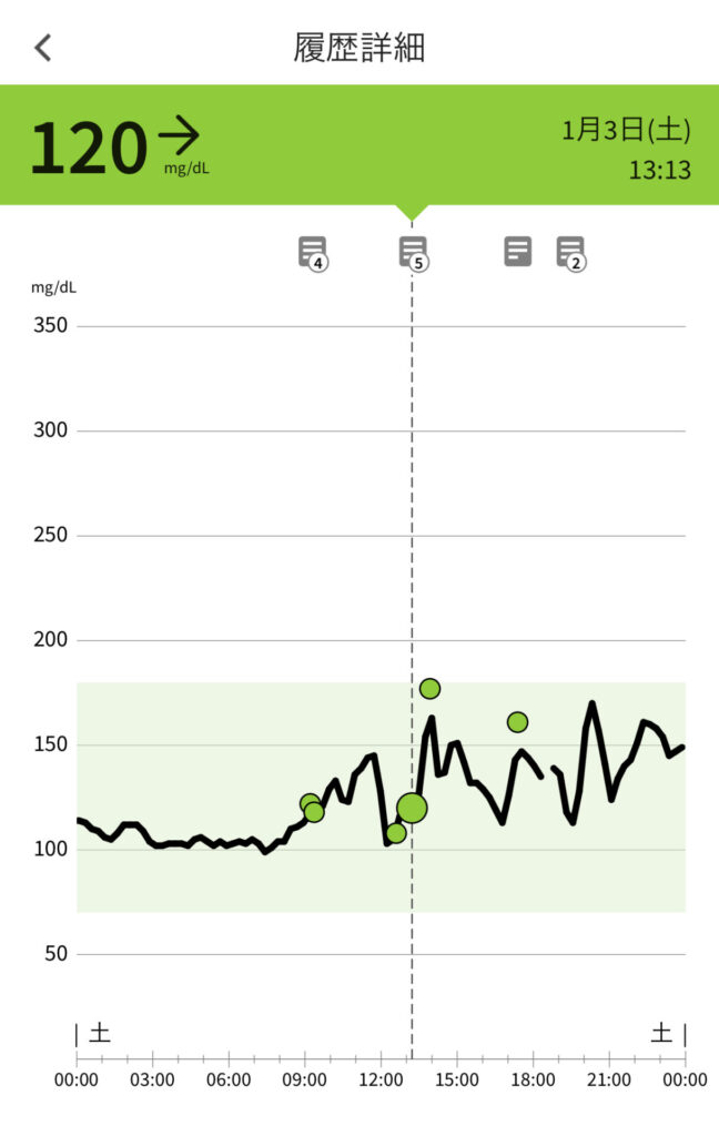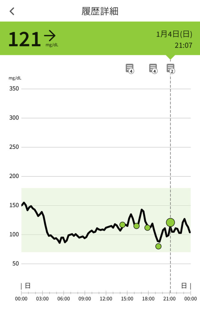 血糖値を見ると、その後、急激に血糖値スパイクを起こす。
